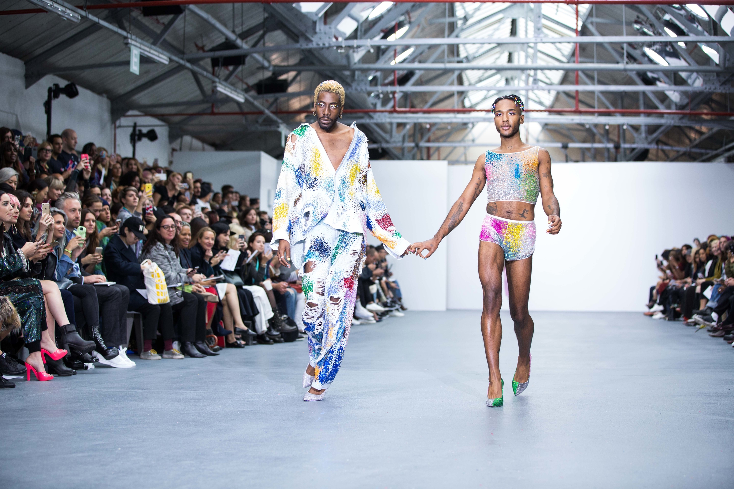 Silhouettes were sporty, feminine, and gender fluid. This could be seen when DJ Larry B and rapper Jay Boogie strolled down the catwalk wearing hot pants and sparkling crop tops rendering the show an all-encompassing affair.
